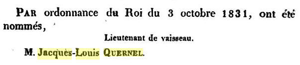 Lieutenant de vaisseau le 30 octobre 1831; port CHERBOURG.