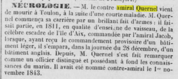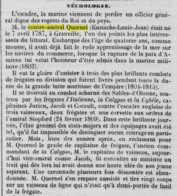 GRANVILLE (Manche) - Décédé le 13 février 1847 à TOULON (Var)