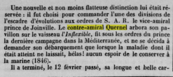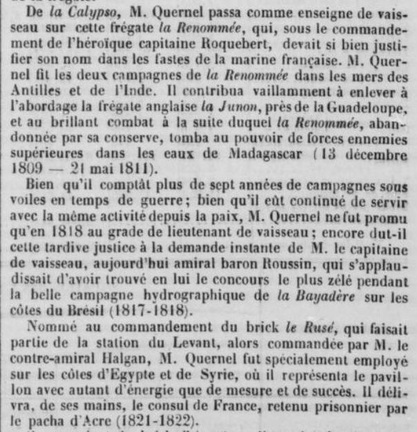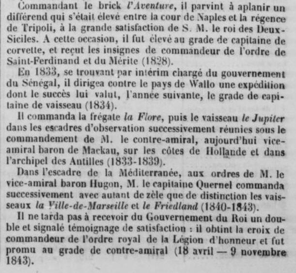 grade de Capitaine de vaisseau en 1834, mais dont la suite de la