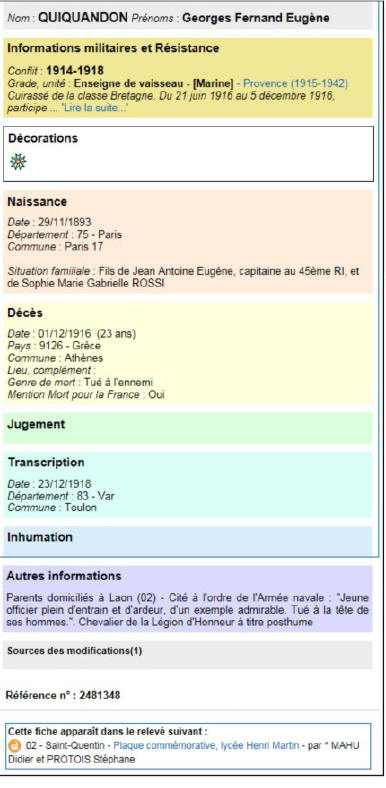 Légion d'Honneur à titre posthume. --- Acte de décès transcrit le 23