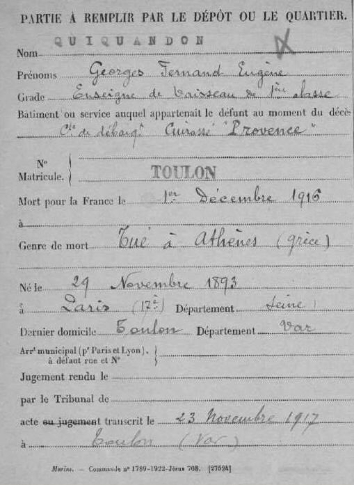 1893 à PARIS XVIIème (Seine) - Décédé le 1er décembre 1916 à ATHÈNES