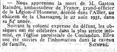 aout 1931 à COULANDON (Allier)