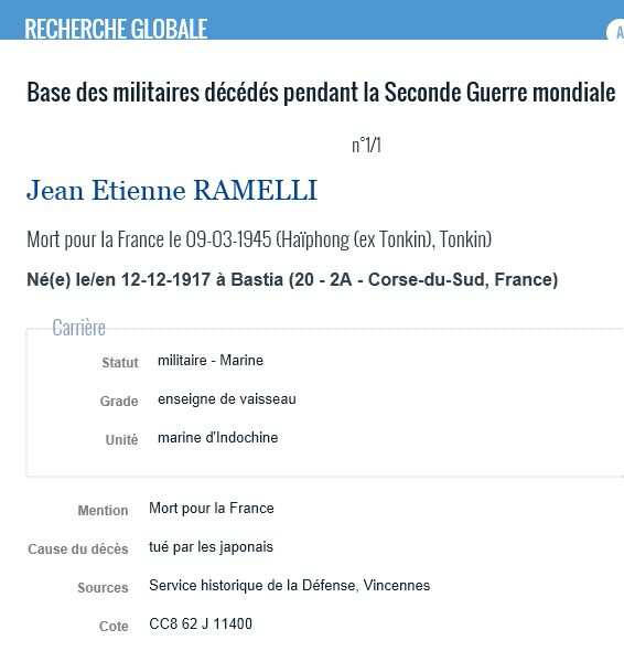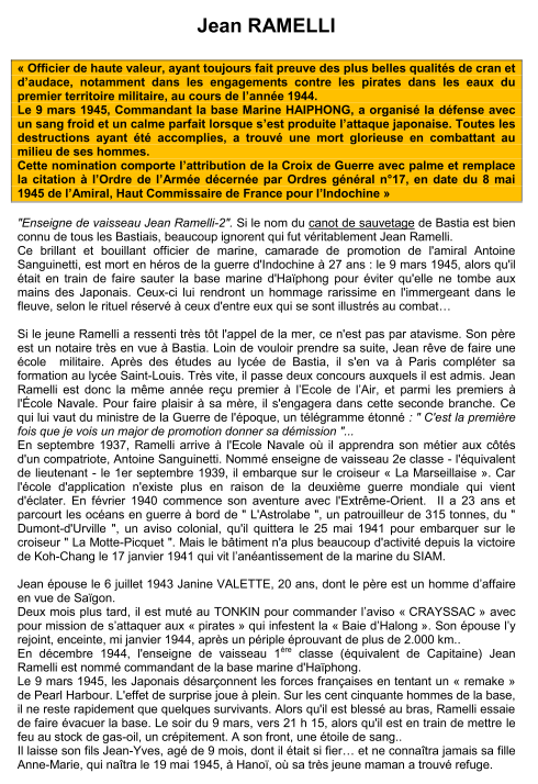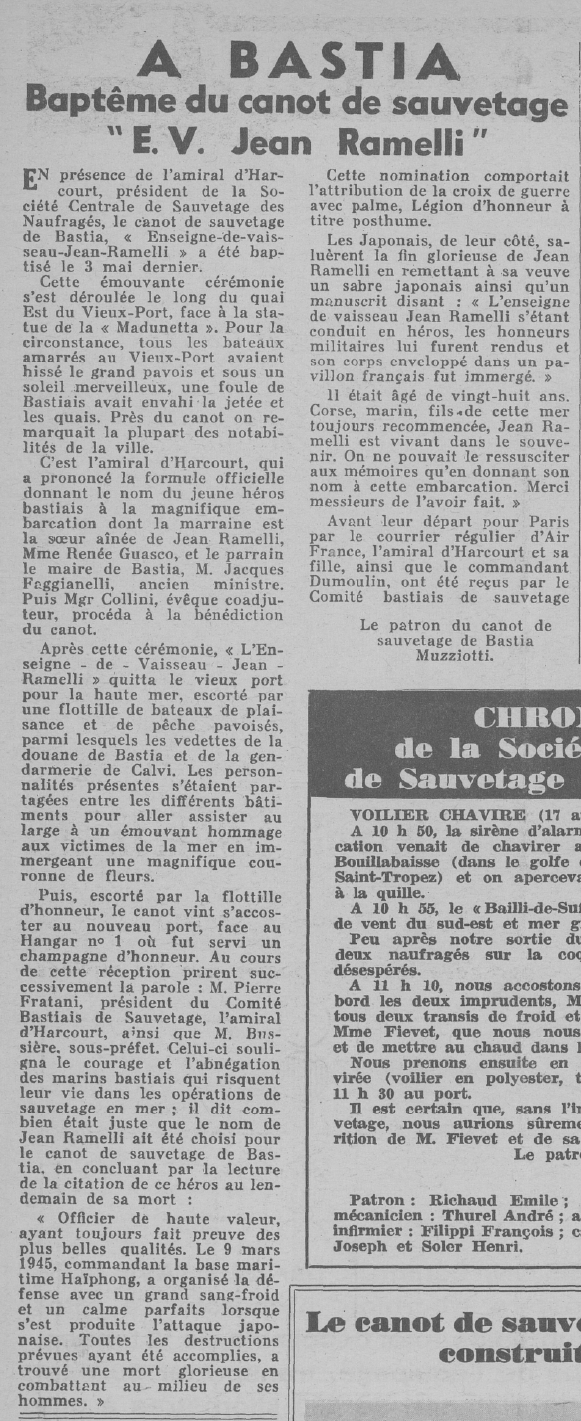 du 13 décembre 1946), l'enseigne de vaisseau Ramelli a été nommé