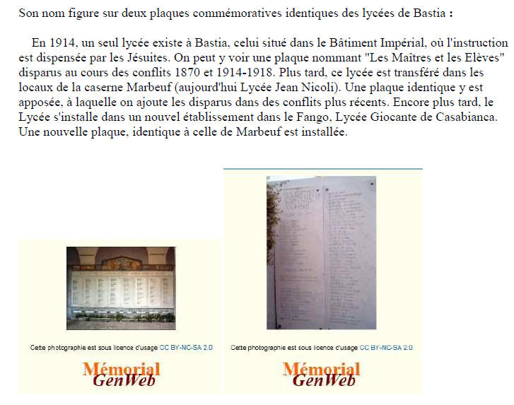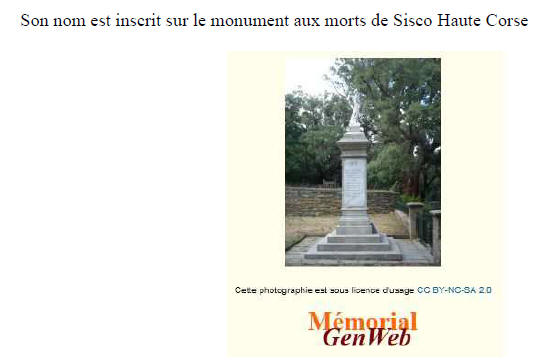 Morts de la commune de Siscu et sur la Plaque Commémorative du