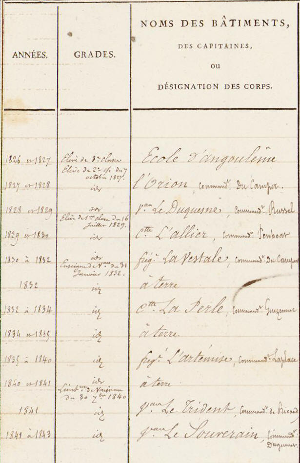 Entre dans la marine en 1826 au collège