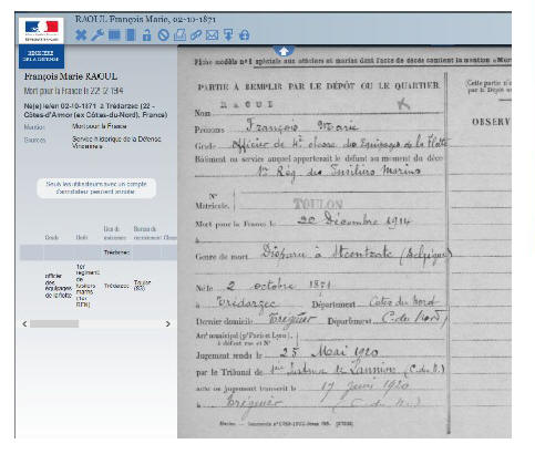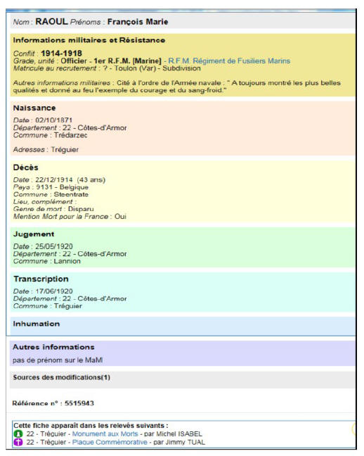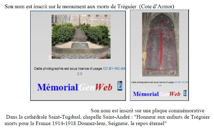 TRÉDARZEC (Côtes-d'Armor) - Disparu le 22 décembre 1914 à