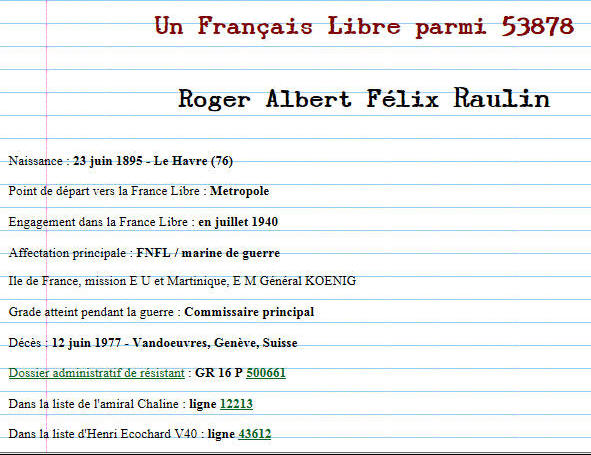Rallie la France libre le 1er Juillet 1940 à Singapour.