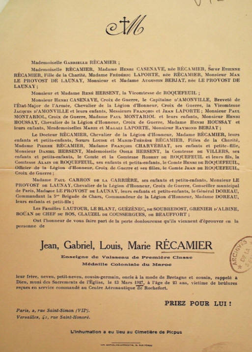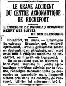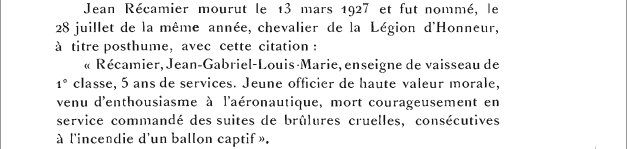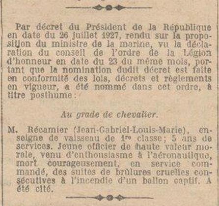 juillet 1927, l'enseigne de vaisseau Récamier a été nommé