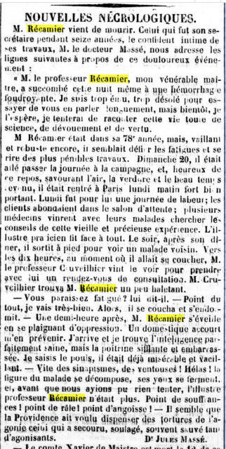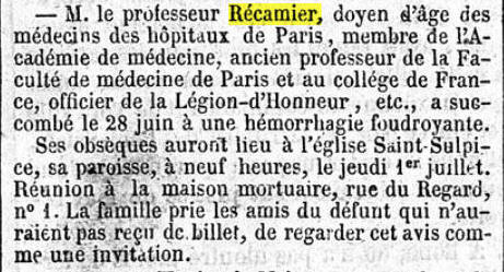 SOURCES : Dr F. Hacquin, J.C.A. Récamier, de la Marine à la