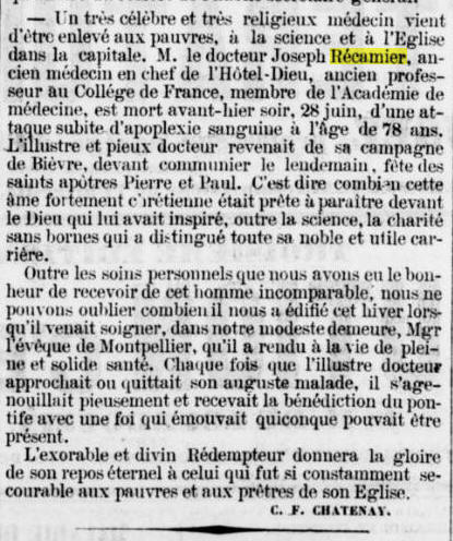 Extrait Gazette du Languedoc / 5 juillet 1852