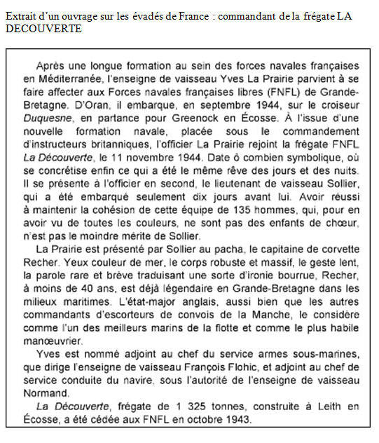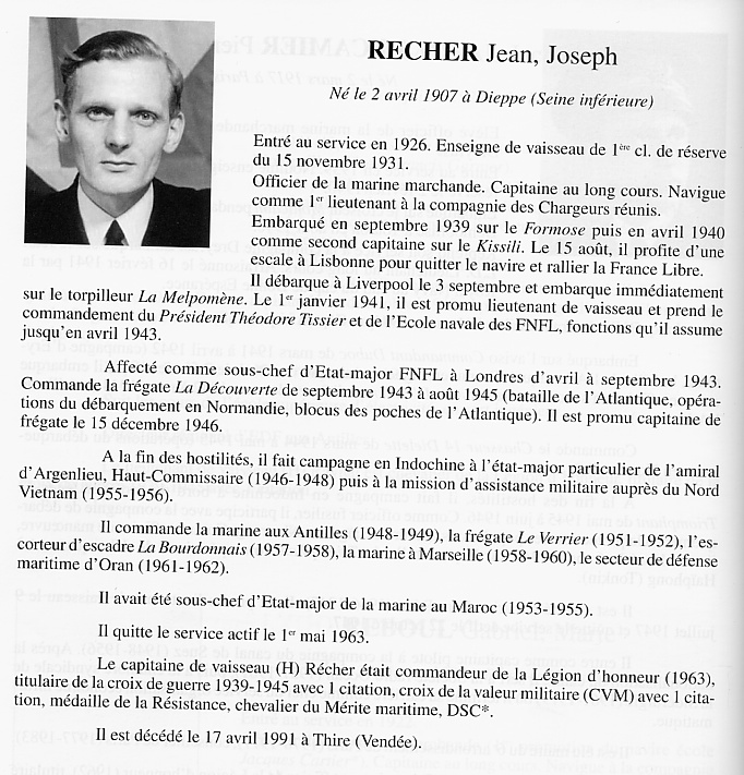 le commandement du lieutenant de vaisseau Recher. Philippe De
