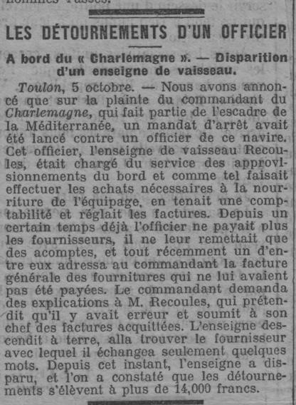 sur le cuirassé "CHARLEMAGNE", Escadre de Méditerranée (Cdt Marius