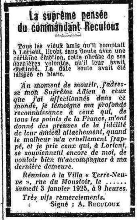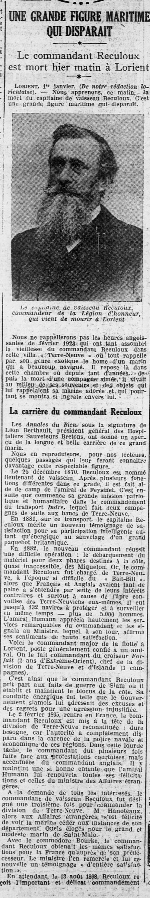 Extrait Le Nouvelliste du Morbihan / 3 janvier 1925