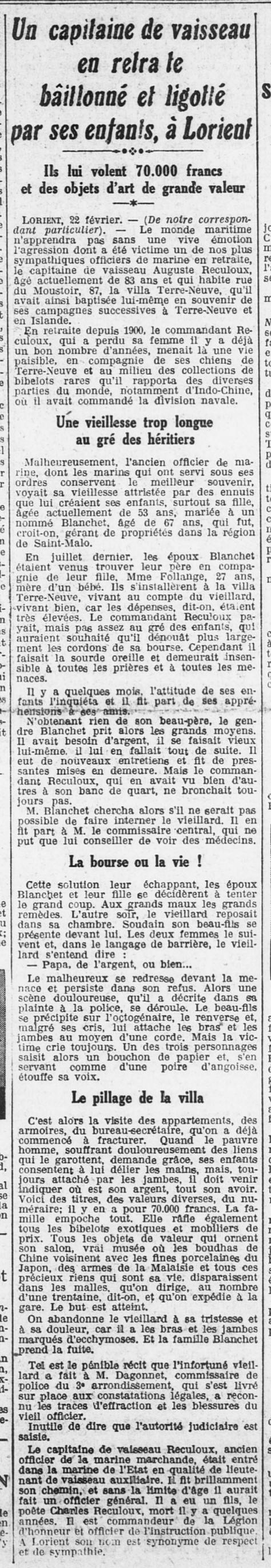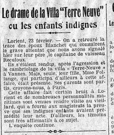 Extrait L'Ouest-Eclair - 2 janvier 1925
