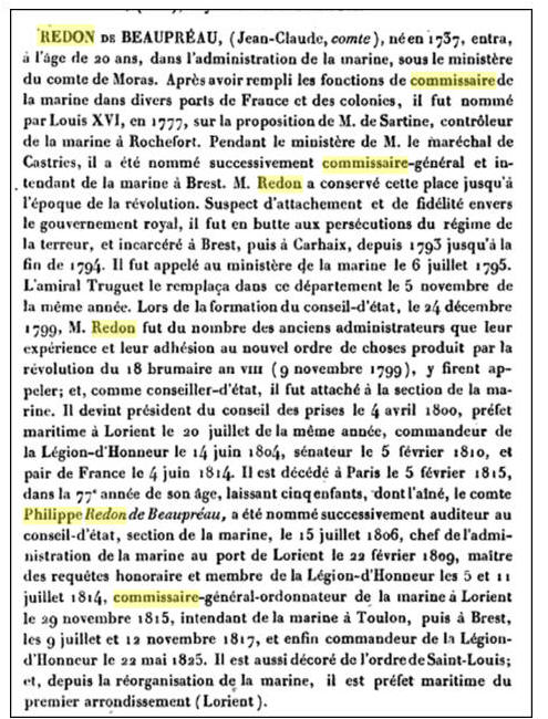 Biographie de son père Le comte Jean Claude Redon de Beaupré,