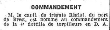 1918, Commandant le torpilleur "CARQUOIS", 2ème Escadre.