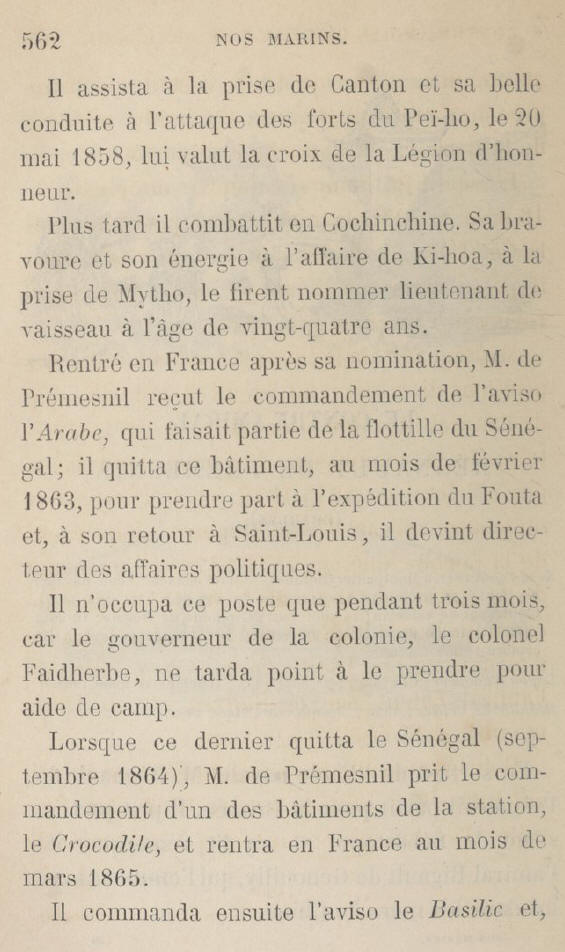 RIGAULT DE PRÉMESNIL puis il commande l'aviso "COÊTLOGON", division