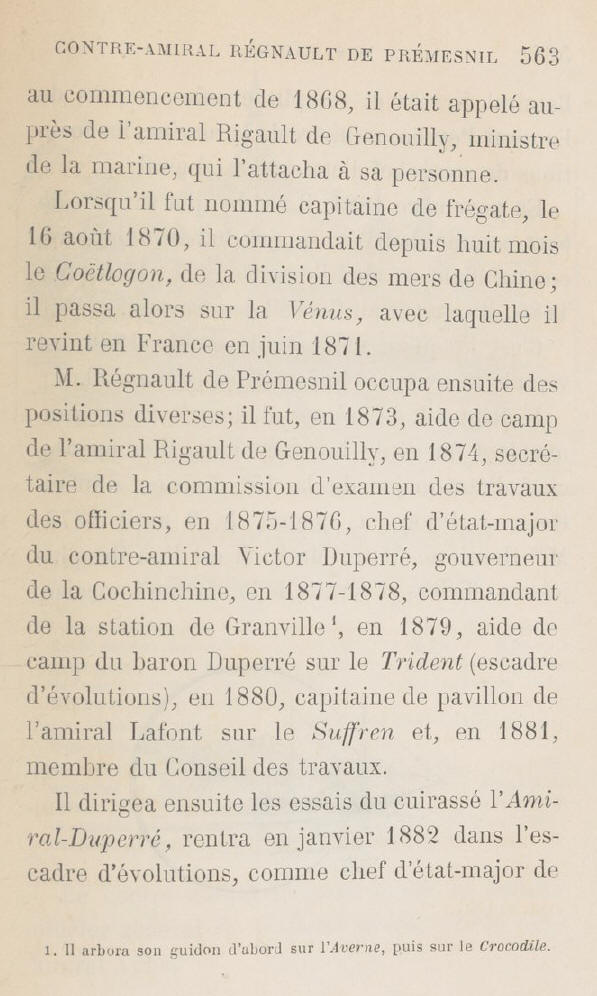 novembre 1884 auprès du Vice-amiral Victor DUPERRÉ, Commandant en