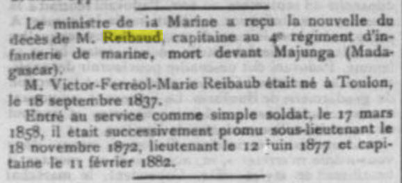 Au 1er janvier 1879, en service au 4ème RIMA à TOULON.