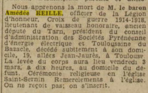 en 1914, laissant le siège à son neveu, René Reille-Soult de