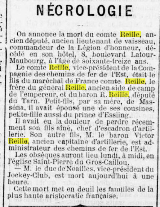 Fils du maréchal Reille et petit-fils du maréchal Masséna, il entra