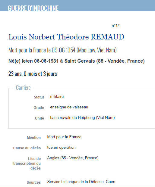 (Vendée) - Décédé le 9 juin 1954 sur le canal des Bambous, Secteur