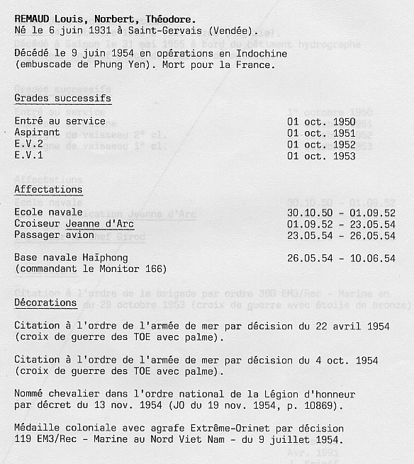 Remaud a reçu à titre posthume la citation suivante à l'ordre de
