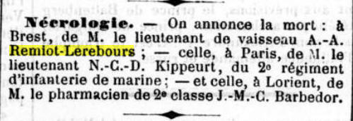 Décédé le 22 avril 1879 à BREST (Finistère)