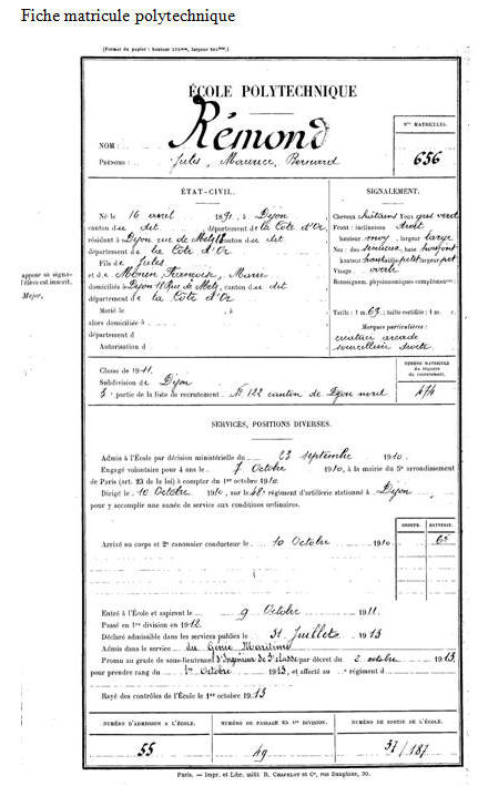 Élève de l'École polytechnique le 1er octobre 1910, opte pour le