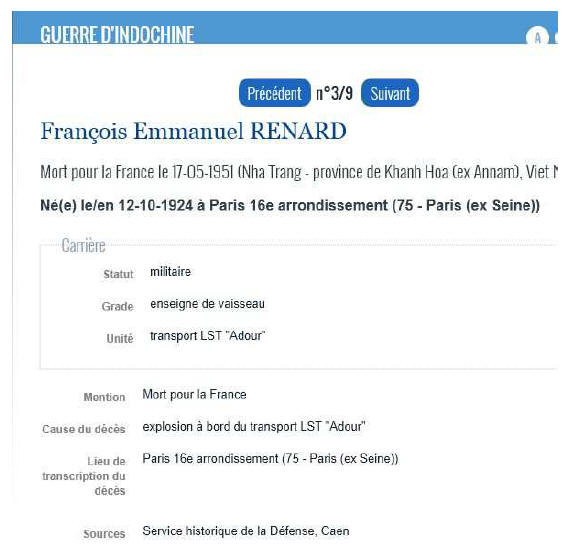 XVIe (Seine) - Décédé le 17 mai 1951 à NHA-TRANG (Sud Vietnam)