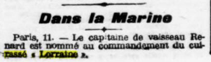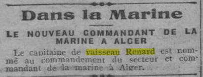 Officier aurait été nommé Commandant du croiseur "KLÉBER".