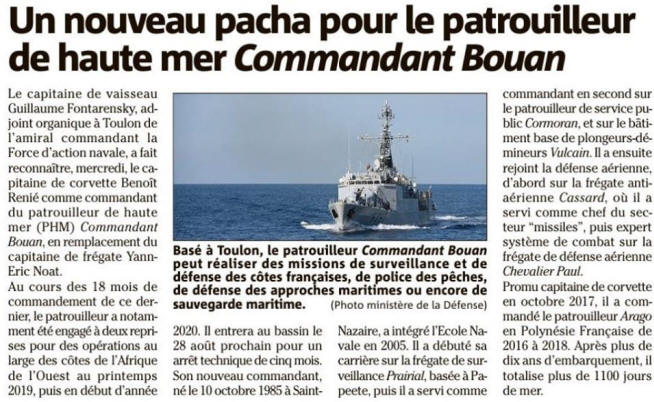 Prend le commandement du patrouilleur de haute mer Commandant Bouan
