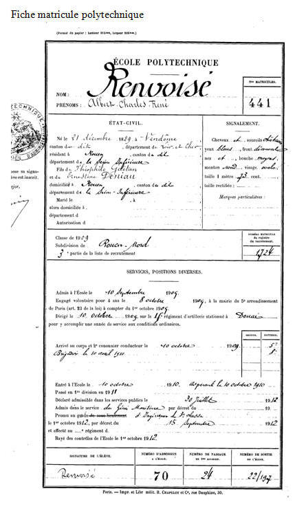 Élève de l'École polytechnique le 1er octobre 1909, opte pour le