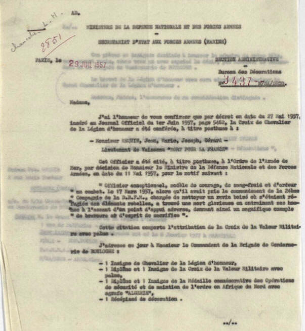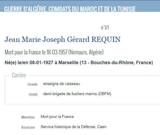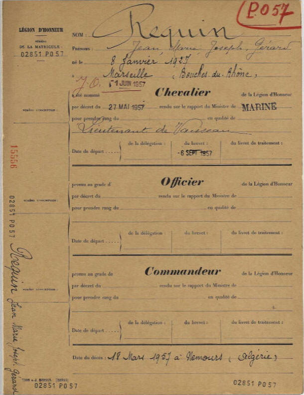 ministérielle du 11 mai 1957, le lieutenant de vaisseau Requin a