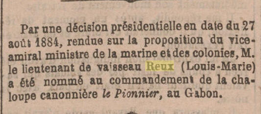 d'Honneur le 18 novembre 1884, étant à bord du "CATINAT".