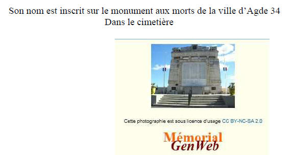Né le 25 mai 1866 à AGDE (Hérault) -