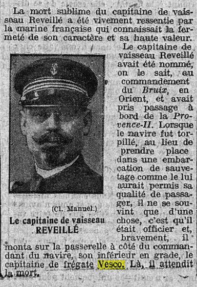 Décédé le 26 février 1916, en mer Égée, devant l'Ile de CERIGO.