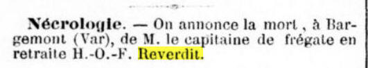 Décédé le 26 juillet 1875 à BARGEMON (Var).