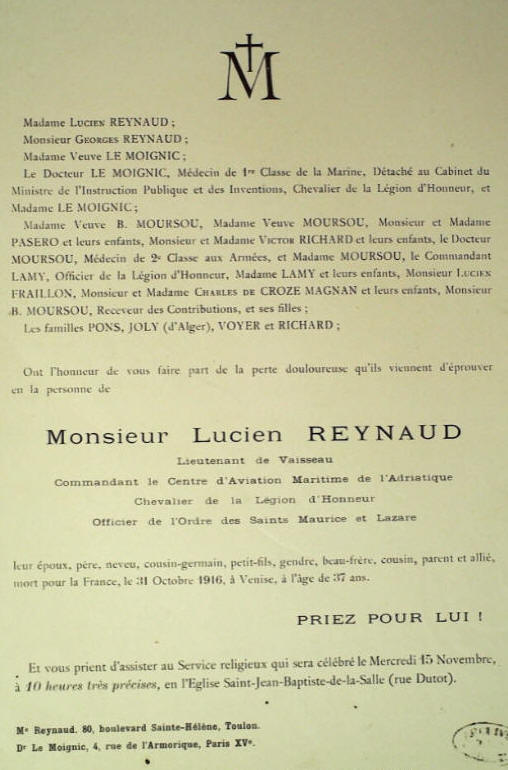 affecté au Centre d'Aviation Maritime de VENISE, cet Officier est