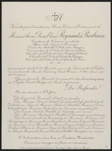 Arsène Denis Olivier REYNAUD de BARBARIN