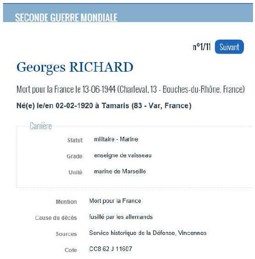 La SEYNE sur MER (Var) - Décédé le 13 juin 1944 sur la commune de La