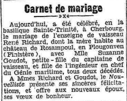 CHOLET (Maine-et-Loire) - Décédé le 28 juillet 1973 à PLOUGONVEN