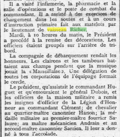 sur le cuirassé garde-côtes "REQUIN", Escadre du Nord (Cdt Marie De