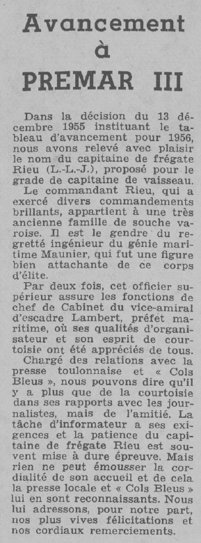 Chef de Cabinet à l'État-major du Préfet maritime à TOULON.