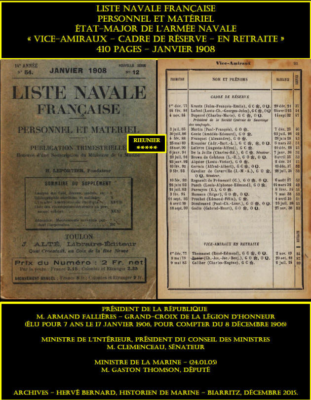 de l'amiral Henri Rieunier, sur les principales étapes - de la vie
