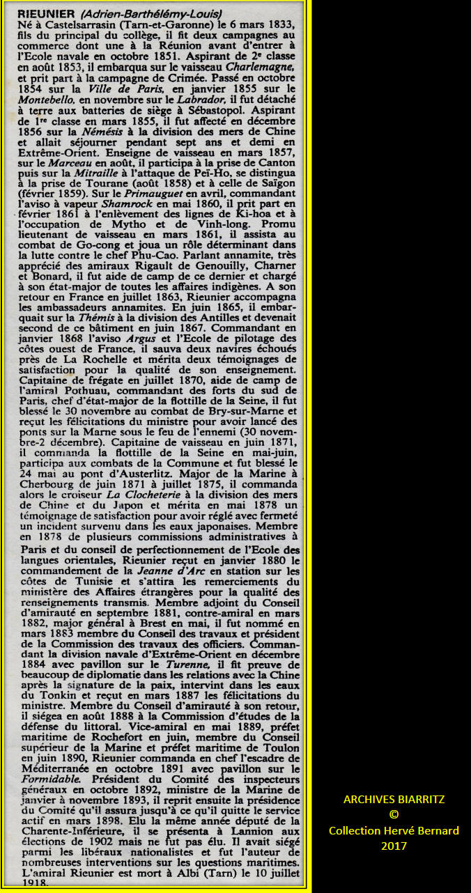 « SPLENDEUR de BIARRITZ » - Famille MOUSSEMPÈS - L'Amiral Henri
