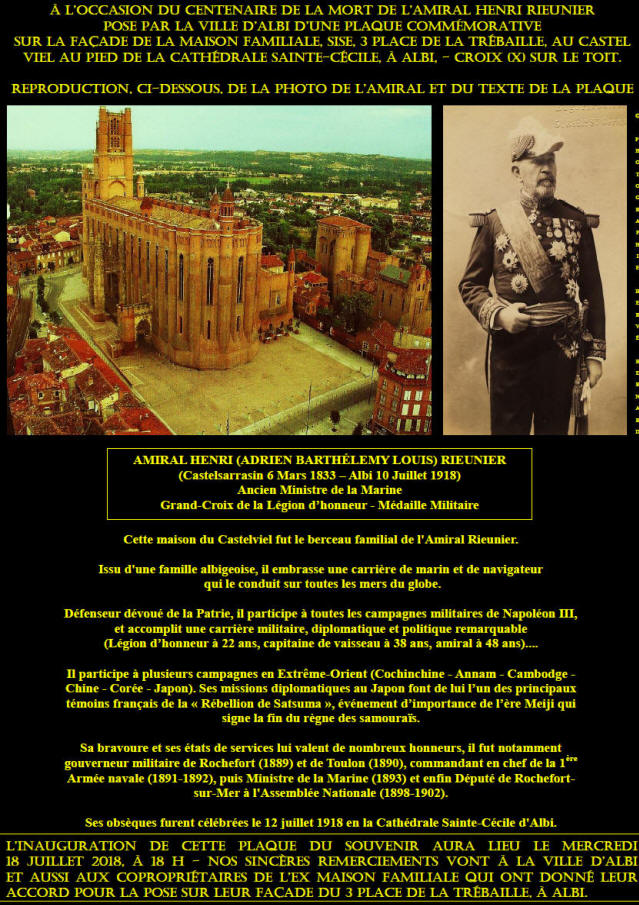 « Albi. Patrie de Rieunier un homme illustre de la marine française