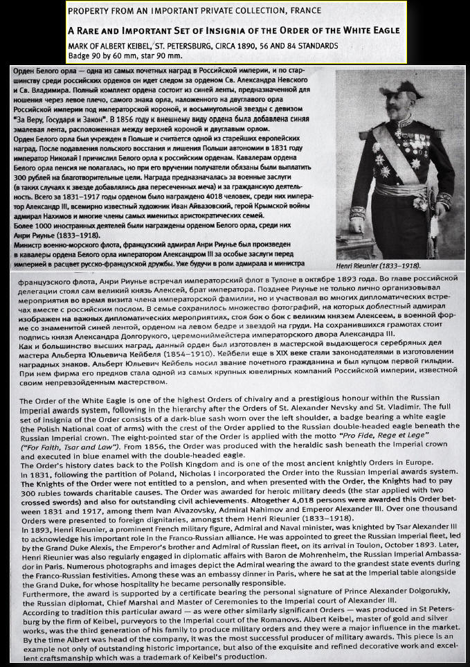 de l'Aigle Blanc de Russie, description du bijou-joyau - Divers /