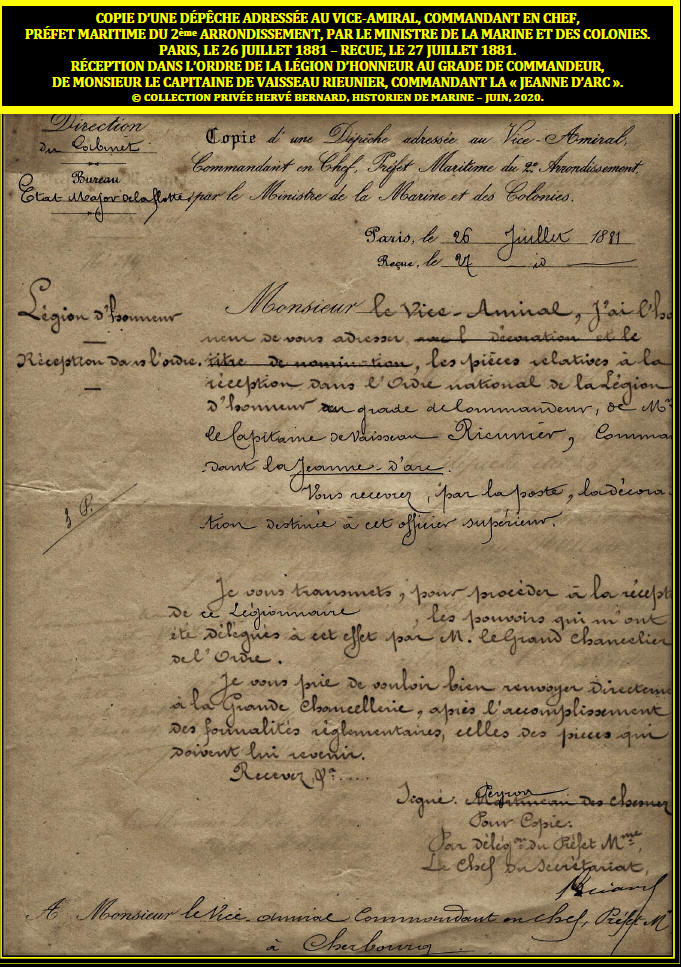 cette fin du XIXe - offerte par l'Amiral Henri Rieunier, en