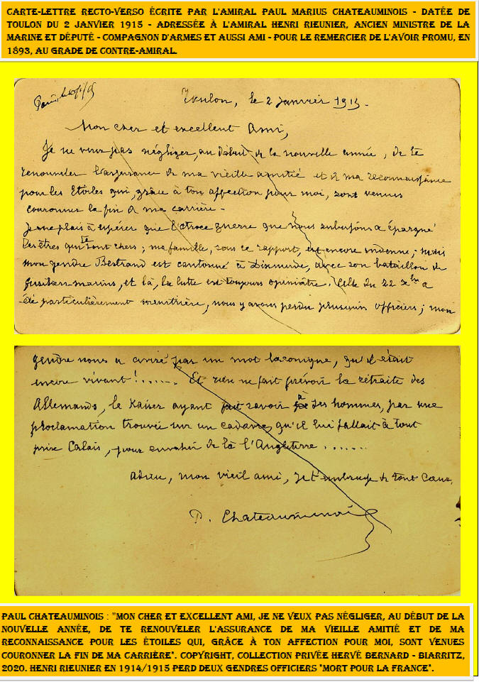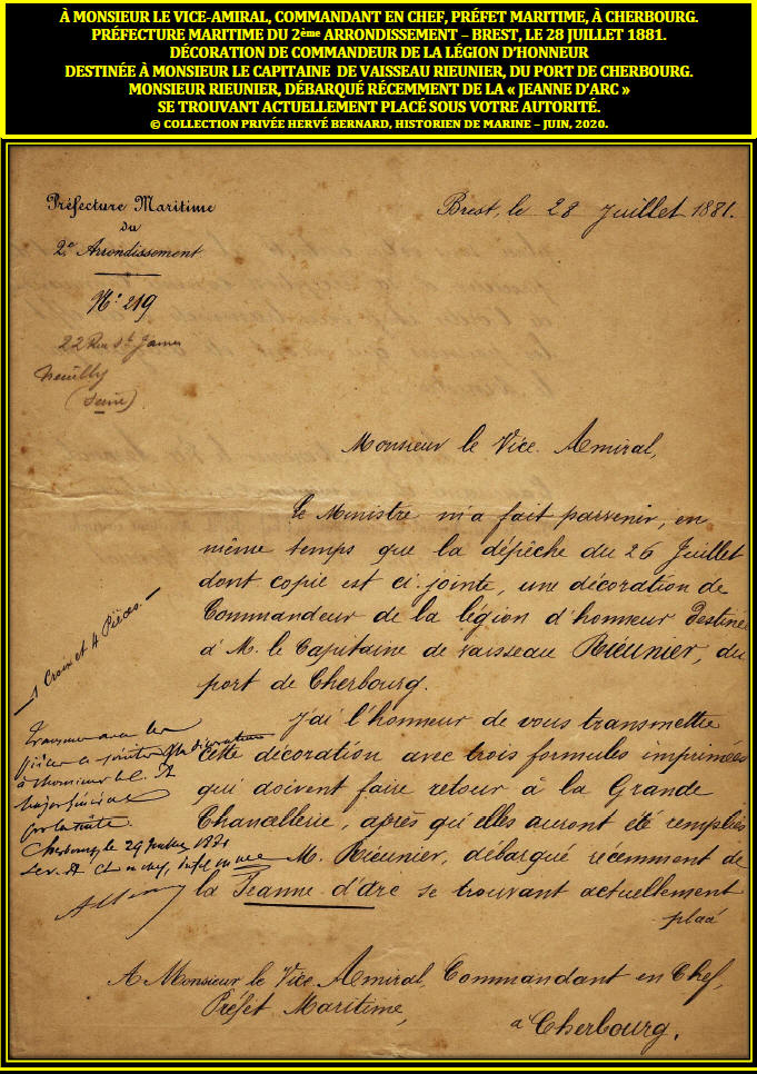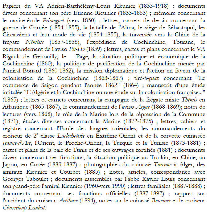 Don de documents précieux et importants de l'Amiral Rieunier - pour